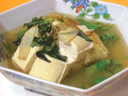 3.起油鍋爆香薑片、九層塔,加入約三百CC水一起加熱。