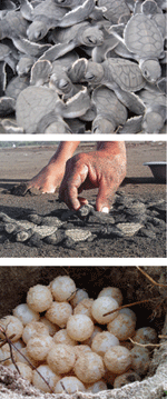 現在這個時代的海龜,剛出生,鑽出沙灘之後,很容易會被其他的掠食者吃掉,如海鷗、肉食性動物,甚至是鯊魚等,都在等著吃還很脆弱的小海龜。