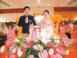 兩位新人為國中同學,新娘賴慧峰所任教的員林大同國中校長謝東閔表示,帶領著大同國中的同事與貴賓,懷抱著十二萬分虔誠與祝福的心來祝賀這對新人,尤其在員林講堂這樣莊嚴神聖的地方舉辦婚禮,佛菩薩一定更會保佑新人富貴吉祥,幸福美滿。男方主婚人表示,很高興能夠娶到這樣的媳婦,新娘慧峰學佛就是最好的嫁妝。女方主婚人則對於講堂提供場地,以及法師、義工的協助,表示感激。