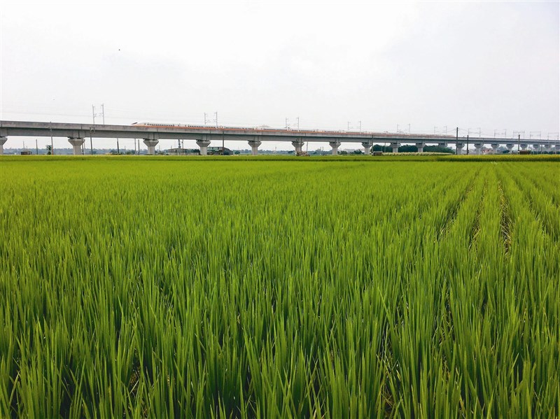 行政院推出農業黃金廊道計畫,輔導農民轉型改種省水作物,但至今雲林高鐵沿線仍可見大片高耗水的水稻。圖/陳雅玲