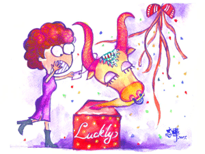 阿達興奮的說:「我可以用那頭死牛,作為幸運抽獎活動的獎品。」