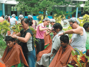 【人間社記者李塔華加爾各答報導】印度加爾各答禪淨中心妙裕法師、如繼法師,日前召集二十位當地華人社區塔壩(Tangra)的佛光會客家會員,前往附近的德雷莎修女精神病患之家,為二百餘位女精神病患理髮、修剪指甲,整修儀容。