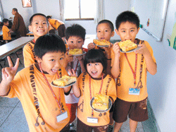 料理課程中,也讓小朋友學習如何料理出一道道可口的佳餚,諸事圓滿、羅漢湯、三色拼盤、披薩、三明治、黑森林蛋糕都出自於小主廚的手,小朋友看到自己的成果,大快朵頤,更了解每件事物都是來之不易,並從協助善後工作中,體會父母辛苦。