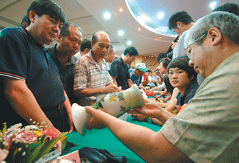 《影像故事》 福州的鑑寶熱 圖/本報香港傳真 |2007.07.21 語音朗讀 340觀看次 字級 大 中 小 由文化部藝術評估委員會、福建電視台《問鼎》節目等主辦的大型藏品鑑定會在福州召開。圖為中國古陶瓷科技鑑定中心首席鑑定師毛曉滬在福州為廣大收藏愛好者鑑定寶物,受到福州收藏愛好者熱烈推崇。 前一篇文章 《台商故事》詹茂盛 愛當農人的商人 下一篇文章 《城鄉小調》 熱門新聞 01【樹博士系列】土壤的祕密XV 水稻田減排新觀念IV 土地的溫柔革命 雲林大埤寫益生菌奇蹟2025.11.0902【寬鼎畫語】 看不見的真相2025.11.1003【森活日誌】意外的香遇2025.11.0904悅讀華嚴經 成為幸福安樂地球人2025.11.0905【視覺DJ 】給自己按個讚2025.11.0906星雲大師全集⑲【佛教管理學②】禪門的管理法⑧2025.11.0907【朗朗晴空】能替別人著想不會小2025.11.0908阿里山林鐵森里號 躍登國際2025.11.0909發現DNA雙螺旋結構 諾貝爾生醫獎得主 華生97歲辭世2025.11.0910佛光山書蔬展開幕 聚焦天天行三好2025.11.09 訂閱電子報 台北市 天氣預報 台灣一週天氣預報 相關報導