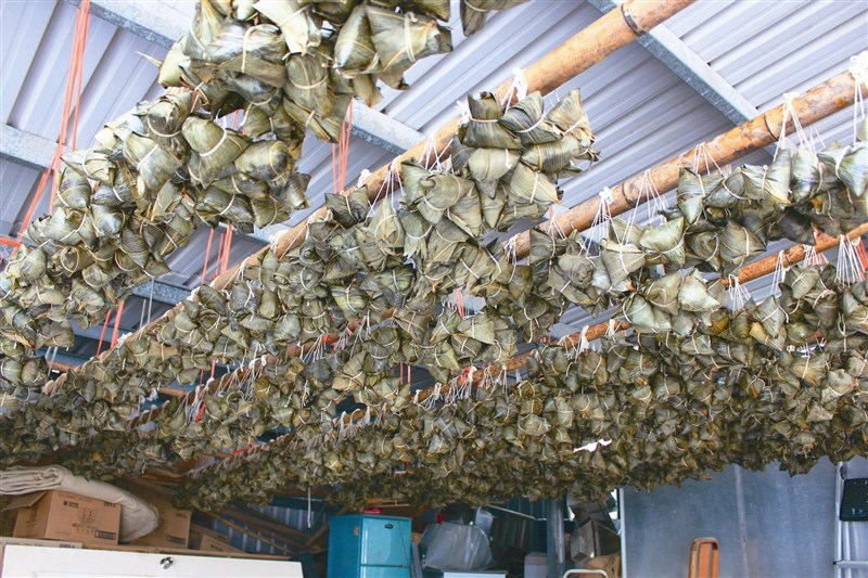 端午節即將來臨,新竹縣竹北市新社社區發展協會昨天動員一百四十位義工,齊心包了七千顆粽子(圖/郭政芬),今天起要送給竹縣弱勢家庭、獨居老人等,這項活動成為新社里傳統,至今包了二十三年,不少收到的人都直呼「真的很感動」。