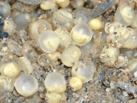 鱟還有很多的別稱唷,例如很多人會叫他「夫妻魚」,因為鱟先生跟鱟小姐看對眼之後,牠們就不會分開來,感情很好。所以很多漁民在抓鱟的時候,有一種禁忌,就是不能夠只抓一隻,因為破壞姻緣的話,會倒霉很久。而也有人叫牠鋼盔蟹,主要是因為牠長的很像阿兵哥的鋼盔。外國人則叫牠馬蹄蟹,也是因為外型而起名。