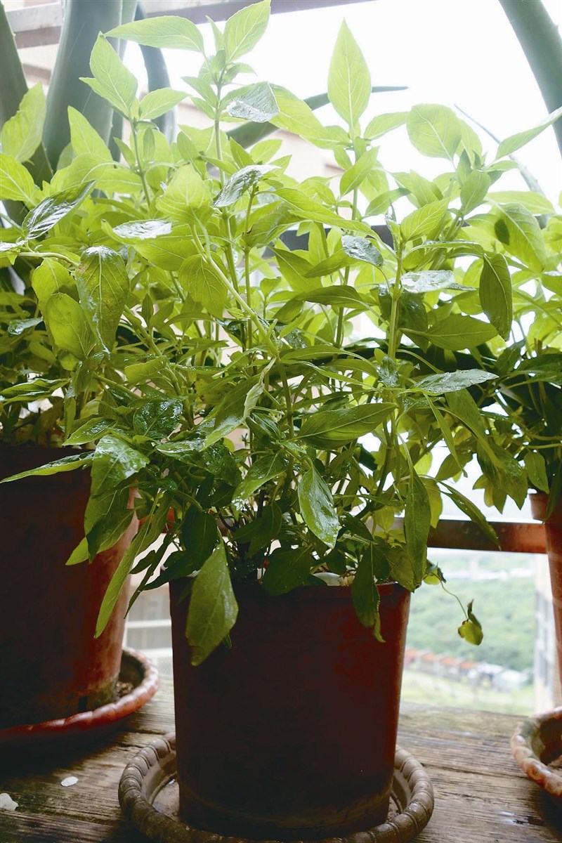 遙想去年九層塔懶長,剪下稀疏幾片葉,捨不得散入鍋裡隨食物熱炒,便握於掌心,自成一小團,用剪子一點一點細剪,碎長綠痕如柳飄逸,落進醬油池子裡,與紅錦鯉似的碎辣椒,嬉戲共游,恍如一幅濃蔭下魚戲柳葉東、魚戲柳葉南、魚戲柳葉西、魚戲柳葉北的景象。