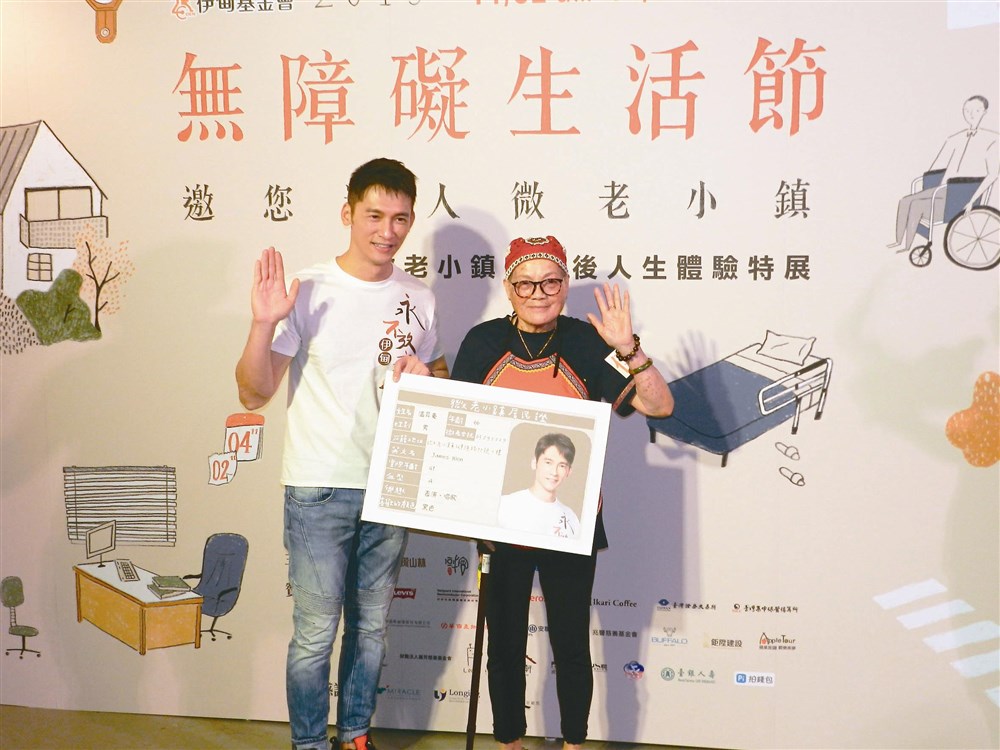【記者李祖翔台北報導】「你能想像三十年後的自己嗎?」伊甸基金會舉辦第六屆無障礙生活節,打造松山文創園區神祕景點「微老小鎮」,即日起至四日為止,歡迎民眾體驗一夕「變老」。昨天公益大使溫昇豪率先扮演六十六歲的春嬌奶奶,體驗視線模糊、負重爬梯、模擬青光眼,獲得小鎮第一位居民證。