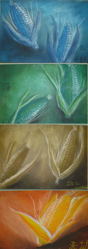 (1)天鈞的玉米,粒粒分明,能注意到光線在玉米粒上的變化,很不錯喔!