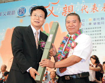 彰化縣政府四日於縣立體育館舉行模範父親代表表揚大會,由縣長卓伯源頒獎給五百六十四位模範父親,張國樑由家人及大員林地區佛光會員陪同前往受獎。張國樑昨天也接受員林鎮公所模範父親表揚,雙喜臨門。