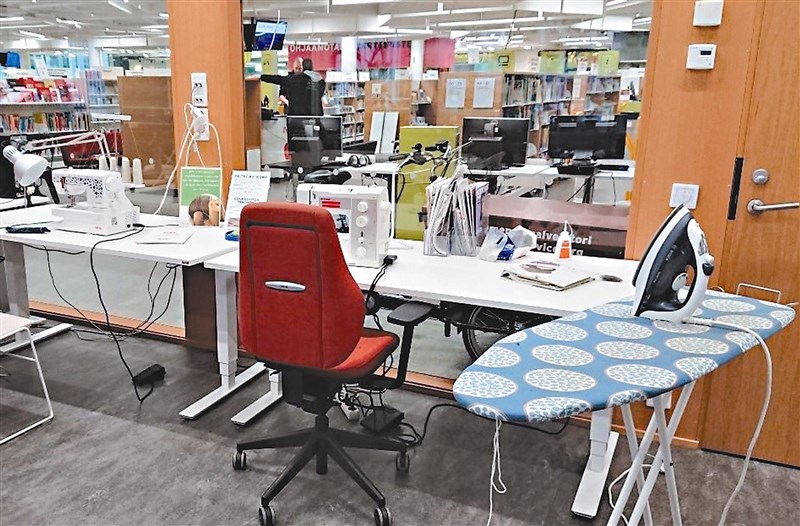 芬蘭首都赫爾辛基的中央圖書館,提供縫紉機等設備供民眾使用。圖╲新北市圖提供