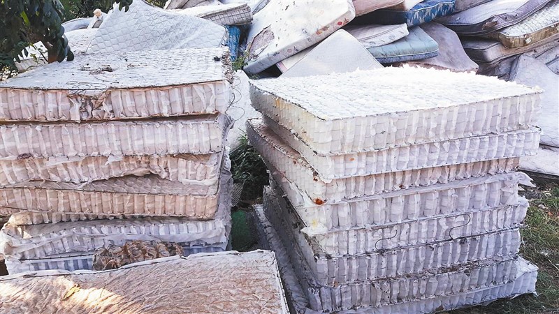 廢棄床墊處理費工費時,在垃圾處理場堆積如山。