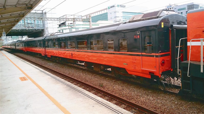 資深鐵道攝影者吳普昭說,第一眼看「出乎想像之外」,新的觀光列車塗裝給人「很日本」的感覺,線條簡單,純粹一兩條線條勾勒,由黑跟橘組成,用色鮮明,特別俐落(圖/明新科技大學鐵道研究社提供),它的橘比莒光號更深,質感感覺更好,看起來像是烤漆,設計不輸國外,「台鐵美學有很大進步,終於有不錯的彩繪列車,令人振奮。」
