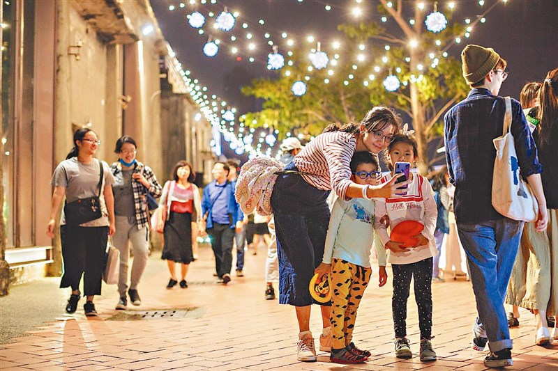 【記者曹麗蕙台北報導】猶如置身海底世界的水波紋燈、轉動的雪花燈、滿天星光的燈棚,為迎接二○二○年,高雄駁二藝術特區即日起從傍晚五時至凌晨三時,將點亮夜間藝術燈景,燈光打在大義區充滿歷史紋理的倉庫間,更顯浪漫氛圍,也吸引許多民眾夜遊駁二,打卡拍照。