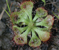 溼地植物不全然都生長在水裡,有一些是生長在「潮溼」的岩壁石縫間,這類的溼地植物稱為「溼生植物」。而寬葉毛氈苔便是溼生植物的一種,也是台灣的珍稀食蟲植物之一。