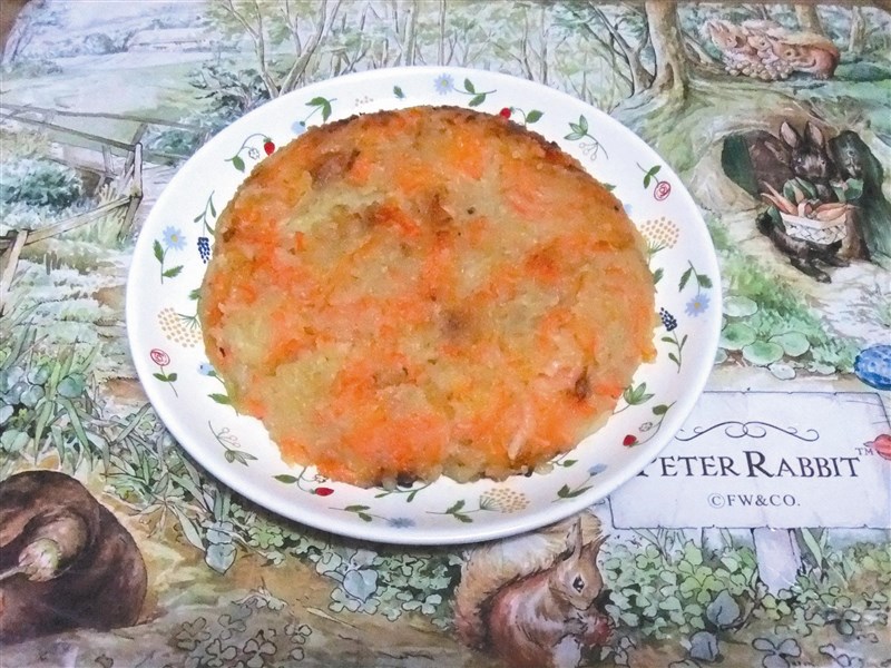 這道簡易爽口的家常烘餅,是先將「胡蘿蔔」與「馬鈴薯」製作成籤條狀,調入少許的糖份與鹽巴佐味,倒入麵粉拌勻調成糊狀,用少許的油熱鍋溫火慢煎成烘餅,老少咸宜都歡喜,食材亦無季節設限,是一道充滿幸福的美食。