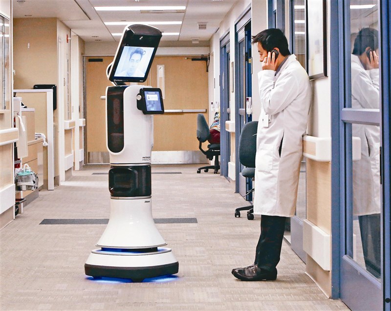 一名醫師利用遠距醫療機器人跟其他同事會診。圖╱美聯社