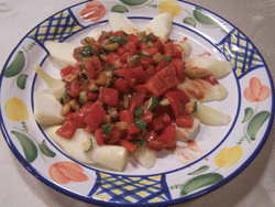 4.將醬汁淋於汆燙後筊白筍的盤中即可享用。