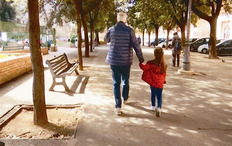 義大利一名祖父帶孫女在羅馬林蔭大道散步。圖/美聯社