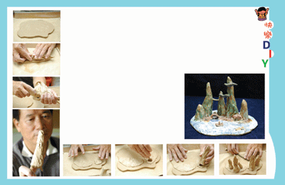《快樂DIY》桂林山水 ◎邱麗玥/文‧圖 彭木能/製作 |2007.08.16 語音朗讀 515觀看次 字級 大 中 小 ●道具:二塊布、彈簧●步驟:1~4. 先隨意將泥土切出一個底座、二片沙洲,接著再切割出五個三角形土塊。把一個布摺成三角形,用泥土將之包裹住;再用另一條布壓在泥土上,任意抓壓,使泥土山表面形成紋路,之後將第一條布取出,山便成形。5~7.先將二個沙洲黏在底座上,兩個沙洲中間要留空間形成水路。接著將五座山黏在二個沙洲上,注意沙洲上要挖洞,以備燒陶時透氣用。8.利用彈簧在底座表面上滾動,以形成水波。利用餘土捏出跨在沙洲間的橋、房子或船等。 前一篇文章 《你是我寶貝》想念 下一篇文章 《創作花園》雲啊!請聽我說 熱門新聞 01【詩】很遠的那邊2025.11.2402菲三好校園10年有成 399校倡和諧2025.11.2103北市府新壽解約 輝達落腳北士科定案2025.11.2204星雲大師全集【傳記】百年佛緣─生活篇 我的交通工具4-42025.11.2105小雪時節避風防寒 黑色食物溫補養腎2025.11.2106火龍果 藏天然寶藏2025.11.2107美施壓 料烏27日前簽停戰協議2025.11.2208【時光重逢】中華藝術陶瓷推手任克重2025.11.2109金門縣文化局參訪佛館 交流文化、慈悲精神2025.11.2110【悅讀人生】弱肌阿媽動起來2025.11.21 訂閱電子報 台北市 天氣預報 台灣一週天氣預報 相關報導 寶寶成長禮 抓周做公益聆聽受傷的童年 北市家防中心推兒少保護展支持18歲公民權 家扶:更符公平正義影音/可愛童音 我還在咳嗽 幫我請假啦影音/天生善良 小女孩哭:我不要吃動物吃什麼都癢?如何減少嬰兒食物過敏