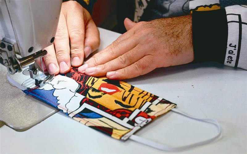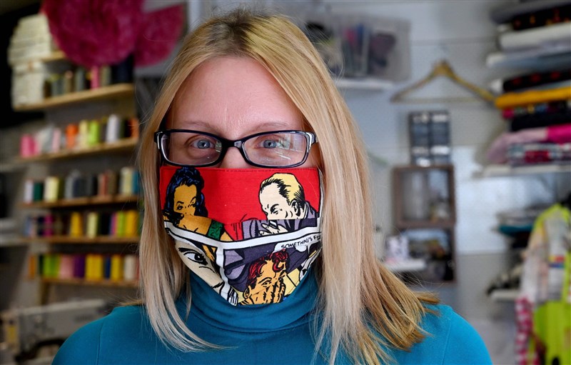一名女子戴著克羅埃西亞設計師艾拉戈維克(Zoran Aragovic)設計的口罩。艾拉戈維克希望幫助人們對抗新冠病毒疫情,他設計藝術風格口罩,讓口罩也可以很時尚。圖/法新社