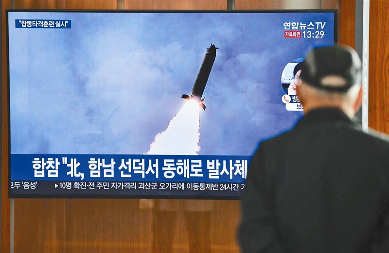 南韓首爾車站的電視九日播放北韓試射飛彈的畫面。圖/法新社