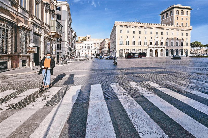 義大利全國封鎖,十日羅馬威尼斯廣場空空蕩蕩。圖/法新社