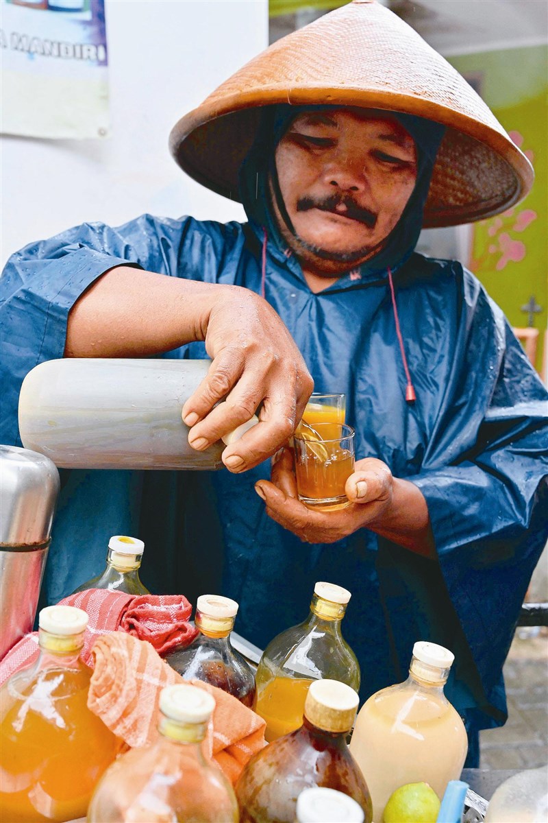 印尼總統佐科威十二日表示,自從疫情爆發後,他一天喝三次印尼傳統的草本飲料Jamu,接見貴賓時也都改用這種常在街頭販賣、混合薑黃檸檬草的飲料。圖╱法新社