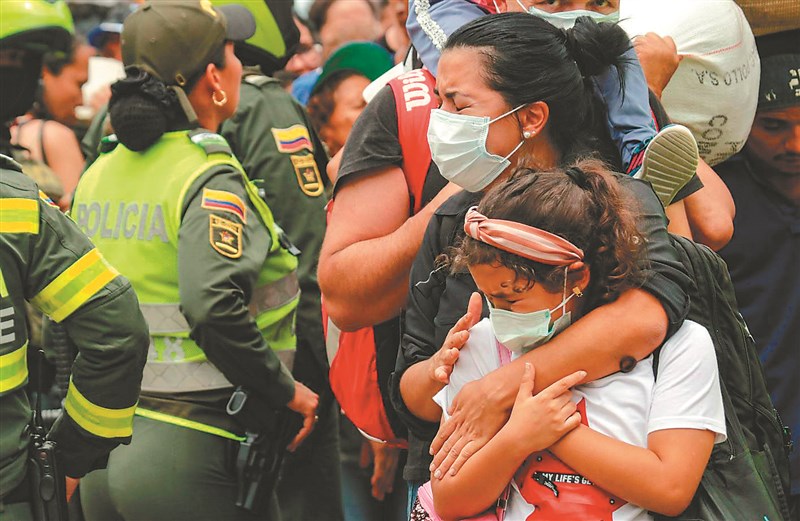 逃離委內瑞拉的民眾十五日試圖入境哥倫比亞。 圖/法新社