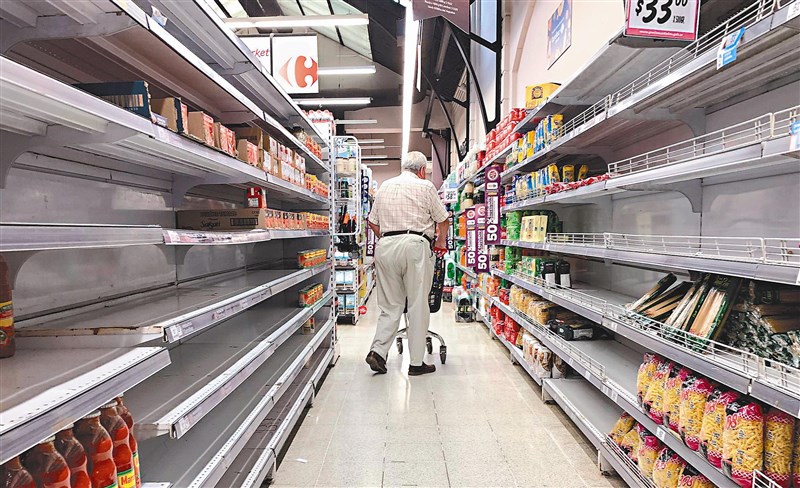 為防止新冠病毒傳播,美國俄亥俄州宣布州內所有酒吧與餐廳只能營業到晚間9時。一家咖啡店員戴著手套數鈔票。阿根廷則關閉邊境15天,禁止外籍人士入境。(圖)是阿國民眾搶購物品,以備檢疫隔離期所需。圖/法新社