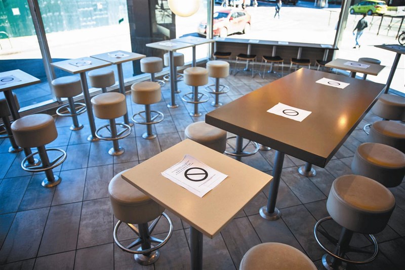 紐約市長下令,市內食肆十七日開始只可提供外賣。圖為麥當勞封閉逾半的座位。圖╱新華社