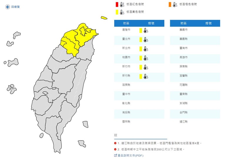 圖說:中央氣象局發布低溫特報。圖╱中央氣象局提供