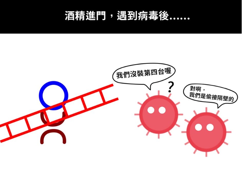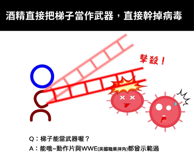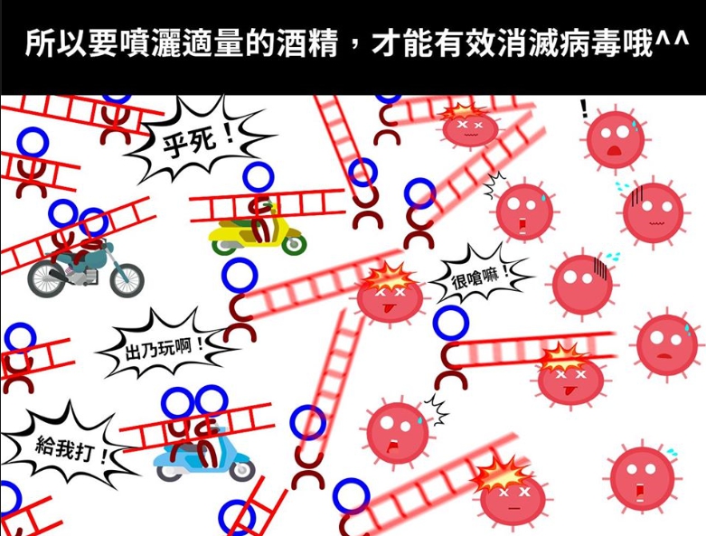 75%酒精為何能殺菌 內政部幽默圖解 |2020.04.13 語音朗讀 3960觀看次 字級 大 中 小 圖╱取自內政部臉書 【本報綜合報導】全球受新冠病毒(COVID-19)疫情影響,民眾出門在外都會戴上口罩,有人甚至隨身攜帶75%酒精殺菌消毒。近期,內政部臉書粉絲專頁上就出現一系列圖片,幽默解釋為何75%酒精能消毒,此文一出後立刻吸引網友回覆,直呼政府宣傳防疫太有梗。內政部臉書專頁12日發文,解釋為何新冠病毒會對酒精如此害怕,小編將酒精(乙醇)的化學結構式拆解,意外發現裡面的元素可以擬化成人和梯子,於是便幽默用此解釋酒精和病毒間的關係,將酒精化成擬真小人以檢查第四台的名義潛入病毒基地中,但可惜病毒是偷接宿主細胞增殖,因此沒有第四台訊號而被拆穿,之後酒精只好使用梯子攻擊細胞成功。對於這篇的化學式原理,小編風趣說到「哦對,然後本篇『原理』大家看看就好,考試保證絕對不會考」,而他也提醒民眾防疫期間請多用75%酒精消毒環境,建議擦拭代替噴灑,會有較好的消毒效果,但使用酒精時也應注意通風以免燃燒發生危險。而貼文一出後,許多網友紛紛留言,表示「笑死,一開始還以為它要講什麼正經的知識」、「幹的好,無敵8+9=75%酒精」、「95趴的酒精太壯,無法假裝啦,不給進門,哈」、「政府也太可愛了吧,病毒表示:怕爆」、「奇怪的知識增加了」、「我到底看了什麼,這還內政部的文欸」、「不是啊~你這樣要我怎麼教小孩?以後化學課都要畫這個給他們看」、「哈哈很ㄎㄧㄤ欸,第一次看懂酒精化學結構式」、「很好笑,但希望宣導可以分清楚細菌跟病毒」。另外有網友也來解答75%酒精為何能真正殺菌的原因,「酒精可殺菌原因是可讓病毒的蛋白質變性,讓它失去作用,而使用75%酒精的原因,則是因為100%酒精效力太強,還沒深入細菌、病毒內部就被外部蛋白『封鎖』,所以內部可能仍具活性,而75%酒精則大約可以剛好侵入內部、有效消滅整體,所以才用75%酒精。」不過,酒精殺菌並非對所有病菌都有效(如對腸病毒、諾羅病毒等無效),因此還是請大家要常保個人衛生、勤洗手哦!圖解連環圖。圖╱取自內政部臉書 前一篇文章 「平日沒客人!」 礁溪長榮鳳凰酒店 評估周休1~3天 下一篇文章 防病毒 史前巨犀也要戴口罩 熱門新聞 01【遨遊藝事】 威尼斯沉船書店2025.12.2902【中醫專欄】 中醫防失智之道2025.12.2703台北道場歲末聯誼 感謝義工同行菩薩道2025.12.2704看人間 厭童、厭老,然後呢?2025.12.3005新馬寺率大馬校長團 訪佛光大學2025.12.2706【閃文集】泰勒絲與狄金遜2025.12.3007宜蘭7.0地震 921後第3強震2025.12.2908當食物銀行義工 佛光人送暖2025.12.2709最好的辦法,就是繼續正常生活2025.12.2710【收穫滿滿】 快樂練氣功2025.12.30 訂閱電子報 台北市 天氣預報 台灣一週天氣預報 相關報導 【星雲大師如是說】處事禪心【星雲大師如是說】人間佛教【星雲大師如是說】正信之美【星雲大師如是說】輪轉相繼【星雲大師如是說】有情的層次【星雲大師如是說】六忍歌