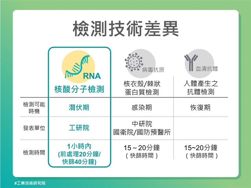 研發成功!工研院疫開罐 1小時快篩90%準確率 |2020.04.15 語音朗讀 1188觀看次 字級 大 中 小 工研院致力發展的新冠病毒篩檢技術,屬於核酸分子測試的快速篩檢方式,檢測準確率達9成以上。圖/工研院提供研院開發「手持式核酸分子快篩系統」,因技術優化,從桌上型變成掌上型,除了外觀與飲料罐一樣而稱為「疫開罐」,重量只有600公克。圖/工研院提供新冠病毒的結構。圖/工研院提供因應新冠病毒疫情,工研院團隊開發分子快篩系統,被感染初期就可在1小時檢驗出低濃度的狡猾病毒。圖/工研院提供核酸分子檢測系統有四大特色,包含高精準、高輕巧、高靈敏與高效率。 圖/工研院提供 【本報新竹訊】新冠病毒疫情境外移入個案激增,值得注意的是在國外曾接觸過確診個案,甚至是已感染的旅客,入境時可能還在潛伏期或是無症狀感染者增多,如何從一進國門就快速篩檢,成為防疫關鍵。工研院開發「手持式核酸分子快篩系統」,在潛伏期就能檢測病毒,1小時內完成快篩,準確度高達9成,可用於機場、診所等,有效阻斷傳播鏈。工研院手持式快篩 一小時就搞定工研院開發「手持式核酸分子快篩系統」,因技術優化,從桌上型變成掌上型,除了外觀與飲料罐一樣而稱為「疫開罐」,重量只有600公克。快篩研發成功來自兩大關鍵,生醫所所長林啟萬說明,新冠病毒屬冠狀病毒家族,團隊透過國際基因定序資料庫,多重比對病毒的基因序列,區分SARS和MERS差異,從中找出相同表現,但也得與流感區隔,以排除干擾,而設計檢測的試劑「核酸探針」成份控制成為關鍵,在多組核酸的交叉比對之下,準確度高達9成。目前國際使用的檢測儀器以中央實驗室為主,傳統使用的聚合酶鏈鎖反應(PCR)熱循環儀,篩檢時間約4到8小時,工研院開發手持式核酸分子快篩系統,以恆溫擴增放大病毒檢測法,在感染初期於1小時內即可檢驗,並針對機場入出境檢測,最快40分鐘內可得結果,速度至少快6倍。手持式檢測儀器體積小,民眾無須再奔波往返醫院,有效減低醫療人員負擔。潛伏期就可驗出 儘早做防疫措施相較於SARS、MERS病毒在潛伏高峰期時就出現症狀,新冠病毒最讓人頭痛是「潛伏期症狀不明顯」,捉摸不定。工研院採核酸檢測技術,針對病毒本體做檢測,在感染初期,從鼻咽喉取得樣本後,再以滴管取出滴在試管中,運用專屬光學即時偵測模組進行檢測,在未發燒或其他症狀前能檢驗出,儘早防疫。為加速量產,目前工研院已與產業界、政府單位、研究單位及醫療院所,包括與國防部國防醫學院預醫所及4家廠商共同合作外,也將與醫療院所合作,預計於6月底運用工研院GMP的場域,完成1萬套恆溫核酸擴增探針試劑套組,希望未來在廠商加入後,7月底完成技轉、達到量產疫開罐的準備,提供第一線防疫人員更精準快速的檢測與防護。 前一篇文章 防疫0確診好高興 漢來亮燈變笑臉 下一篇文章 新冠病毒》新增2例確診 1人來自「最毒班機」 熱門新聞 01記得與忘記2026.01.0802滋補暖胃 小寒節氣蔬食養生2026.01.0503悍將、雄鷹補戰力 拚闖季後賽2026.01.0904溫補暖身節氣料理2026.01.0505大阪佛光山寺菩提眷屬 佛前立願迎新春2026.01.0506南投山區 梅花盛開2026.01.0707新惠中寺奪國家建築金獎 為教爭光2026.01.0508【愛的樣貌】平凡裡沉澱出深情2026.01.0609台水潮州營運所落成 佛光山灑淨2026.01.0910社論--快時尚的高昂代價2026.01.05 訂閱電子報 台北市 天氣預報 台灣一週天氣預報 相關報導 【星雲大師如是說】處事禪心【星雲大師如是說】人間佛教【星雲大師如是說】正信之美【星雲大師如是說】輪轉相繼【星雲大師如是說】有情的層次【星雲大師如是說】六忍歌