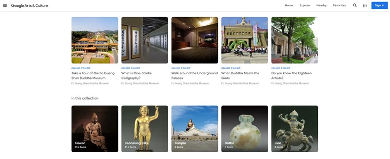 佛陀紀念館與Google邀您透過沉浸式技術體驗,來探索佛館的建築、重量級展品與活動。利用現代科技和佛館提供的130多件展示,人們就可以走一趟人間佛教的文化之旅。透過Google街景科技,網友們得以透過視訊輕鬆地參觀佛館,行經禮敬大廳,走上成佛大道,最後到本館瀏覽部分展廳。同時,也可以看到高解析度的展示,包括星雲大師一筆字作品、世界神明聯誼會活動以及四十八座地宮的展品。