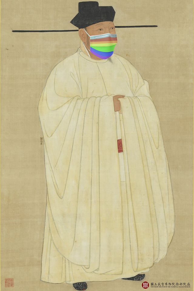 圖說:故宮南院臉書小編創意結合防疫時事與策展主題,推出「宋太宗戴彩虹口罩」。圖/取自故宮南院臉書