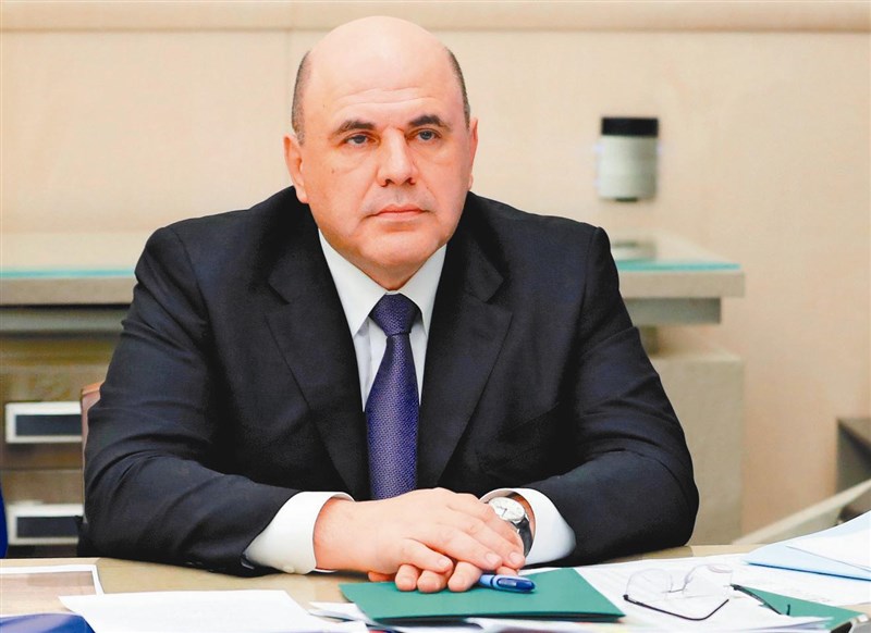 俄國總理米舒斯京上月三十日表示,他已確診新冠病毒並告訴總統普亭自己將自我隔離。圖為米舒斯京上月二十八日在莫斯科和普亭及內閣成員參加電話會議。圖/美聯社