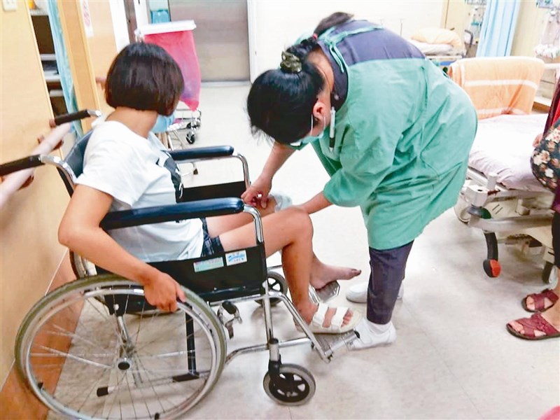 南投縣國姓鄉林姓導遊解說員昨返家途中發現有人摔車,不僅停車幫忙,還帶摔車女孩就醫,後來發現她腳趾骨折(圖),便收留該女子暫住家中一周。圖/林姓解說員提供