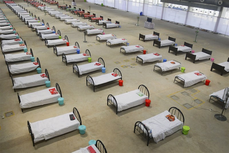 6月3日在印度阿加爾塔拉拍攝的一處會展中心改造的隔離點。印度衛生部3日發佈數據顯示,截至當天,該國較前一日新增確診病例8909例,為疫情暴發以來單日新增病例最多的一天,確診總數也突破20萬例。圖/新華社發