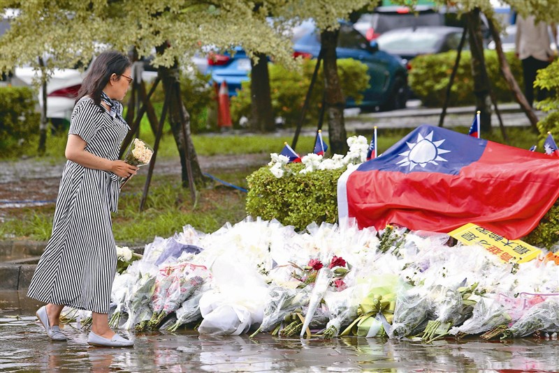 高雄市議長許崑源靈堂昨開放弔唁,靈堂旁還有民眾獻花表達哀思。圖/劉學聖