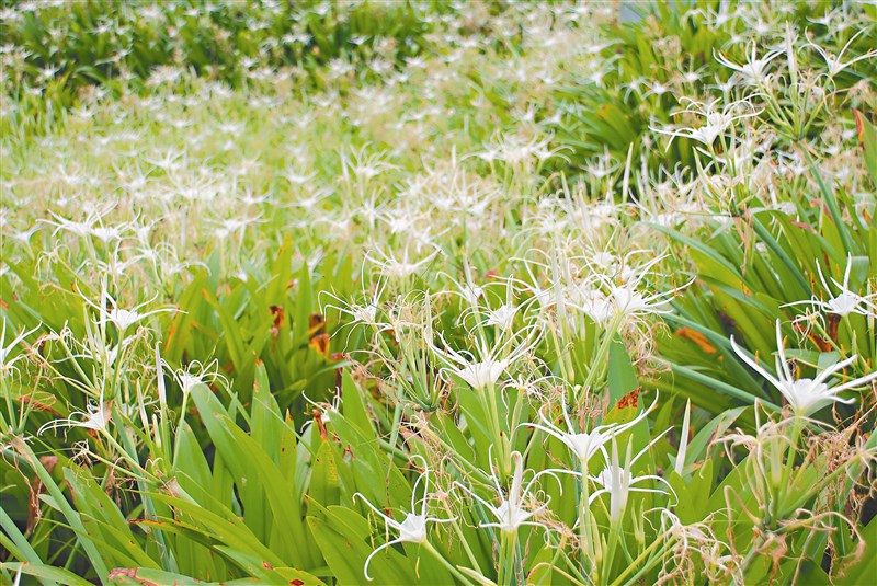 【植物聯合國】 螫蟹花 文/趙華 |2020.07.19 語音朗讀 6083觀看次 字級 大 中 小 在烈日驕陽之下,我徜徉在一片白色星海裡,是的,這就是白晝出現的銀河——在叢生的濃綠光滑修長葉片中,瘦長花莖挺立,頂端細如針的花苞,綻開一朵朵奇特小花。圖/趙華 被螫蟹花包圍的小徑。圖/趙華 螫蟹花白色蹼狀物連結的狹長花瓣。圖/趙華 螫蟹花白色蹼狀物連結的狹長花瓣。圖/趙華 文/趙華在烈日驕陽之下,我徜徉在一片白色星海裡,是的,這就是白晝出現的銀河——在叢生的濃綠光滑修長葉片中,瘦長花莖挺立,頂端細如針的花苞,綻開一朵朵奇特小花,小花有細長的純白花瓣,花瓣底部有如一圈白色薄裙連結,淺綠纖細的「雄蕊花絲」帶著醒目的橘紅色花藥生在白裙上;如果深綠葉片是無垠夜空,這些白色小花就是數也數不盡的點點星光,湊近一聞,還傳來微微清香呢!它叫作「螫蟹花」,屬於石蒜科家族螫蟹花屬,屬名Hymenocallis,是由希臘文hymen(膜)和kalos(美麗)所組成,意思是指這個屬成員有著奇妙形狀——薄膜連結6個狹長花瓣,形成淺杯,而雄蕊又生於淺杯之上。乍看之下,像手長腳長的蜘蛛或是螃蟹,因此有人叫它「蜘蛛百合」或是螫蟹花,它的英文名字就是Spider lily,不過,Spider lily也可以當作石蒜科家族其他幾個屬成員的通稱,並不是螫蟹花所專有。石蒜科是一個龐大的家族,常見的觀賞植物水仙、石蒜、孤挺花都是家族成員,而蔥、韭菜跟大蒜則是大家再熟悉不過的成員了,但是這個家族大多數都有「毒」,不能食用。螫蟹花也是,雖然十分美麗,但要是不小心吃了它的鱗莖,可是會引起嘔吐、腹痛、腹瀉、頭痛等症狀。螫蟹花屬的成員大多來自美洲,原產於美國東南部、墨西哥、加勒比海和南美洲北部,常被引入世界溫暖區域作為觀賞植物,來自西印度群島的螫蟹花也不例外,在台灣的公園、學校、庭園花圃裡都有它的一席之地。每到炎熱的夏天,純白的螫蟹花伸出花莖,張開長長的腳爪,悄然無聲地爬進我們的生活,1朵、2朵……從路旁綠籬開始蔓延,直到無數的耀眼白星鋪出一道星河,讓人不得不注意它的存在、並折服於這繁盛的美景。在這快要熱暈人的熱浪之中,這些高舉朝天的潔白淺杯迎向陽光,太陽愈大愈開花,形成白色波浪,彷彿為夏日帶來一方沁涼,我踏上為螫蟹花包圍的小徑,聽著「浪花」拍打,感受它強大的生命力,在陽光照耀下,似乎和它一起茁壯了呢! 前一篇文章 黃麗鳥蕉和蠍尾蕉 下一篇文章 【視覺DJ】 美景在日常 熱門新聞 01桌球年終賽激戰 林昀儒力爭晉4強2025.12.1202【研朱札記】 臺灣第一本訪碑專著 《北臺灣之古碑》與石坂文庫2025.12.1103傳燈60.百年仰望紀念郵票 明年3月發行2025.12.0904泰國合艾水災 佛光山送暖助復原2025.12.1105佛光山人間大學新馬分校 結業展示所學2025.12.1006【人間行路】迷路的異鄉人 2025.12.0907光明大學宿霧藝術學院 三好音樂劇放光采2025.12.1108多倫多佛光山 佛光人行佛精進獲獎2025.12.1109洗衣公車 助街友找回自信2025.12.0910冰雪夜綻佛光 西來寺響應哈崗親子嘉年華2025.12.09 訂閱電子報 台北市 天氣預報 台灣一週天氣預報 相關報導 【視覺DJ】幸福滿杯【植日光年】遇見初冬的顏色【草木堪為友】新奇罕見的海南紅豆樹【植感生活】忘憂草 一身都是寶【藝象空間】荷光萬古涵用畫境與人生對話【綠手指日記】彩繪花容的夏堇 作者其他文章仙草【植物聯合國】 大地秋客 萬壽菊與孔雀草【植物聯合國】 金花石蒜 花葉不相見【植物聯合國】 酒瓶木棉美人樹