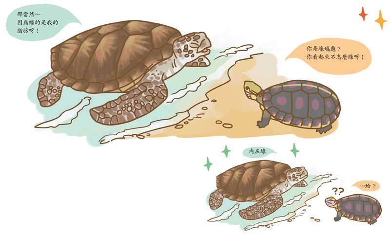 綠蠵龜體內的脂肪是深綠色的(不過這個組成跟牠的飲食無關),人家之所以叫牠「綠」蠵龜不是因為外表,而是因為牠的脂肪顏色哦!圖/玉子