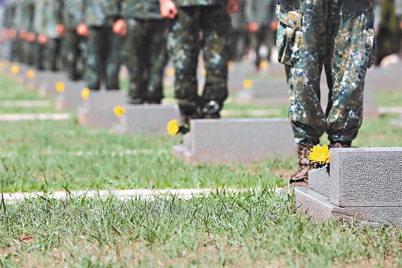 八二三砲戰六十二周年,金防部官兵於太武山公墓獻花追悼陣亡將士。圖/中央社