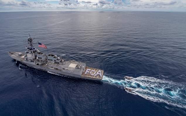 美軍神盾艦韋恩·邁耶號(DDG-108)穿越台灣海峽。圖/韋恩·邁耶號臉書粉絲專頁
