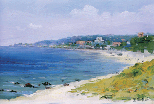 那是心靈的聲音,非常安靜地訴說著退潮的記憶。海水以七種藍色示我,以七種變化的音韻,以脈搏的節奏的靠近、退去,靠近、再退去。