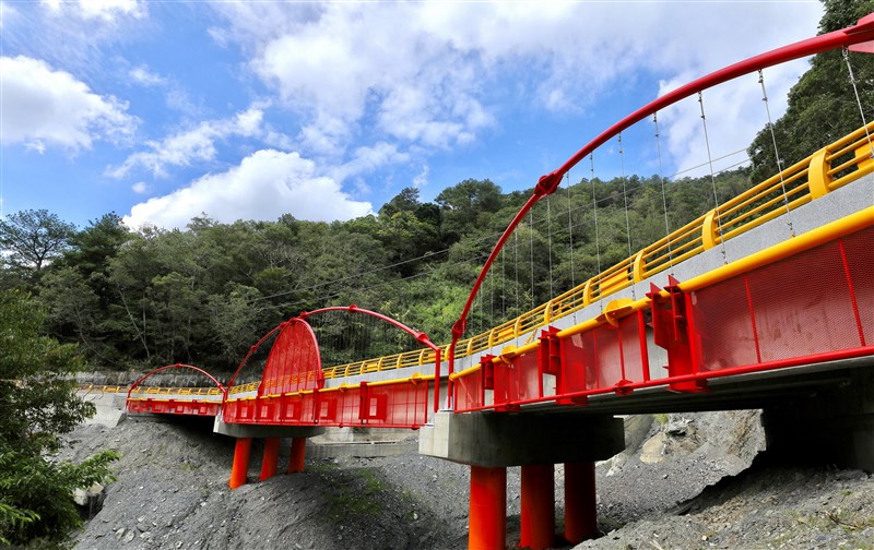 【本報南投訊】南投縣奧萬大國家森林遊樂區聯外道路約7.6K處的石灰坑溪,近年常遭受土石流阻斷交通,林務局南投林管處今年避開致災路段斥資3800萬元新建「石灰坑橋」,外觀融入當地楓葉意象,並趕在賞楓季前完成驗收,11月初已開放通車。