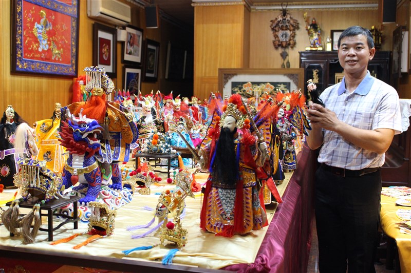 鹿港鎮民黃晉瑩從小喜歡看布袋戲,蒐集了200多尊戲偶。圖/林敬家