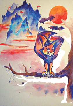 山的背光面有「勤奮蝙蝠洞」,由於土地作物生長不易,那裡的蝙蝠特別勤奮節儉。還有面向大海有著美麗風景的「美麗蝙蝠洞」,唱歌跳舞是那裡蝙蝠的最愛。