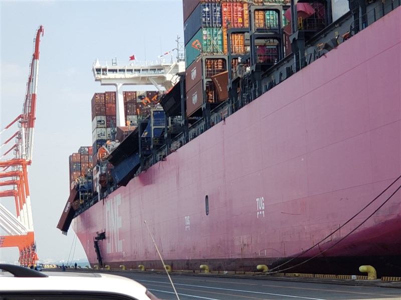 船上許多貨櫃也損壞變形。圖╱取自推特(@maritime_cyprus)