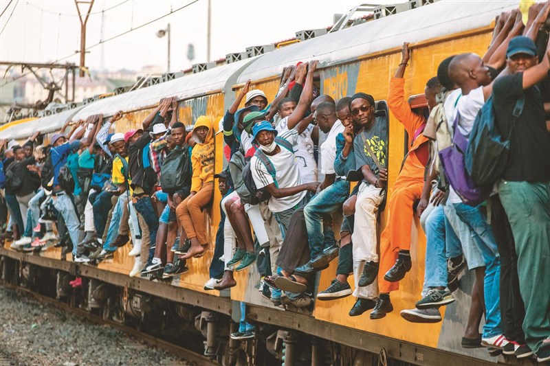 南非政府將註銷今年對中國大陸和伊朗旅客發出的近一萬份簽證,並要求原本免簽證的義大利和美國等地民眾入境須申請簽證。圖為索維托地區的通勤火車,許多乘客抓著車廂外殼的驚險景象。圖/美聯社